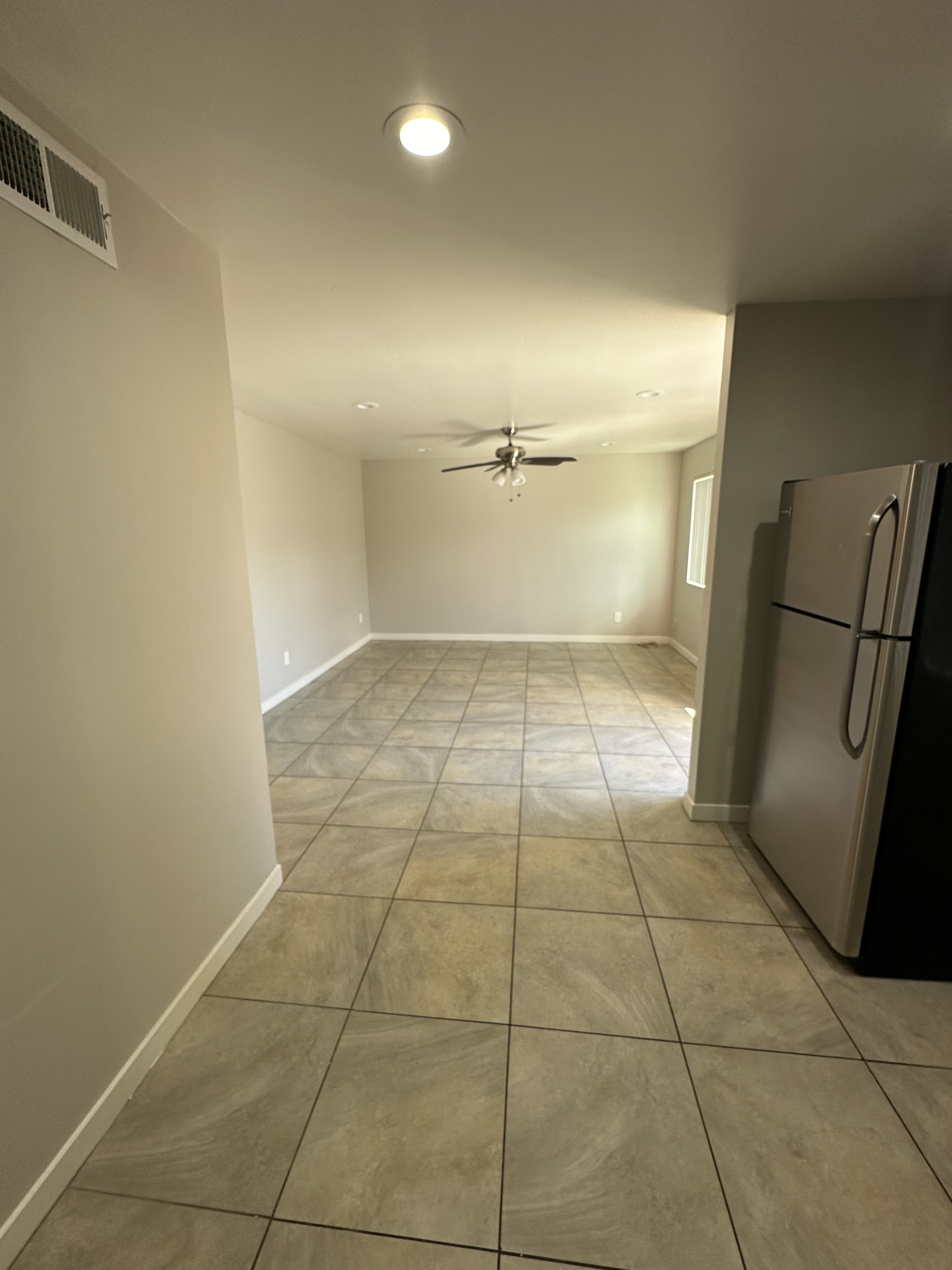 Spacious kitchen featuring stainless steel appliances. Newer flooring throughout.